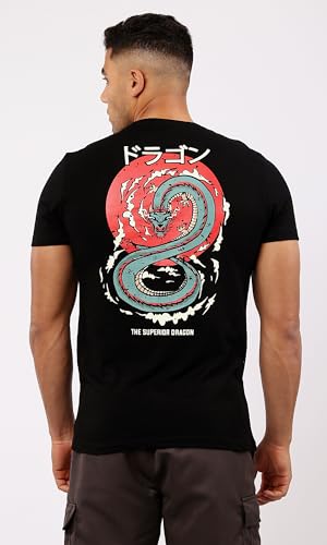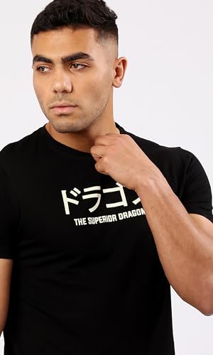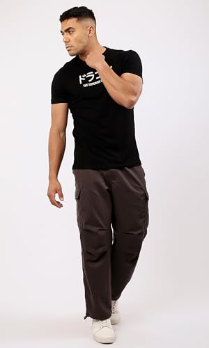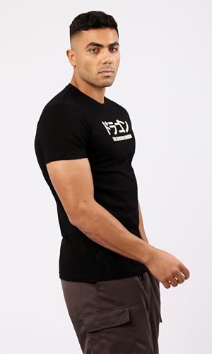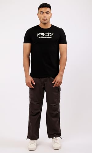 Ravin - تيشرت عصري للرجال برقبة دائرية وكم قصير وتصميم مزين بطبعة من ريفين، أسود