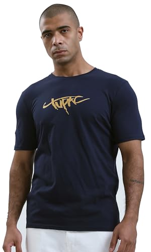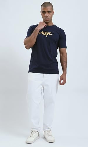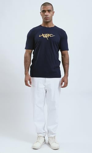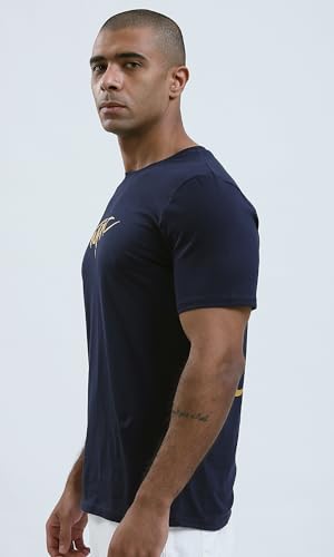 Ravin - تيشرت عصري برقبة دائرية وأكمام قصيرة للرجال من ريفين، لون كحلي مرقش