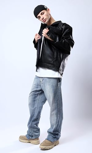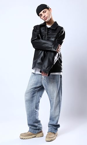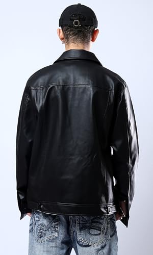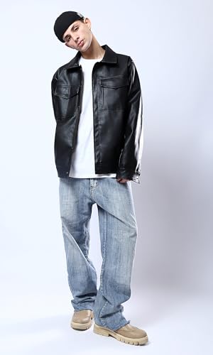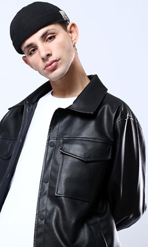Ravin - ريفين قميص جلد اسود لامع للرجال مع جيوب امامية جاكيت