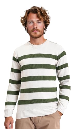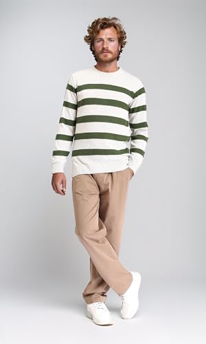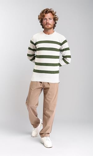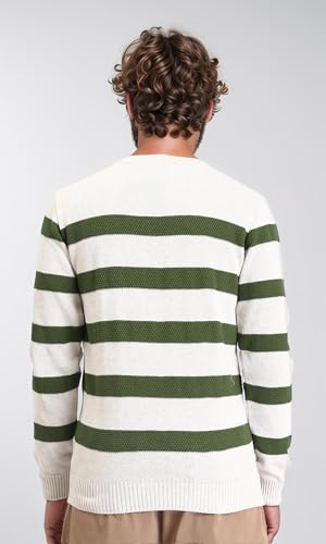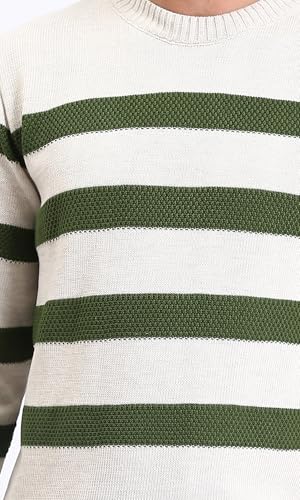 Ravin - ريفين بلوفر شتوي مخطط سهل الارتداء للرجال - بيج وزيتي غامق - R211503