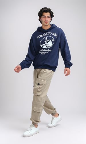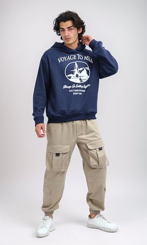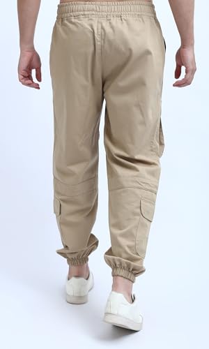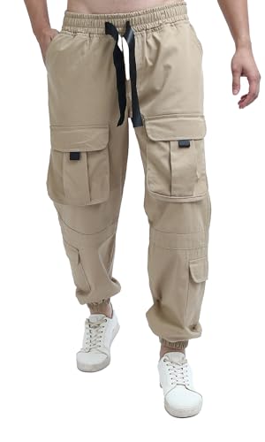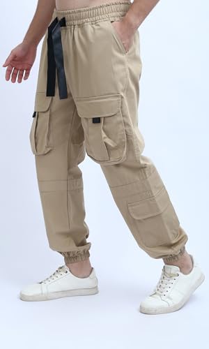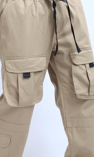Ravin - بنطلون كارجو أسود سادة برباط للرجال من ريفين