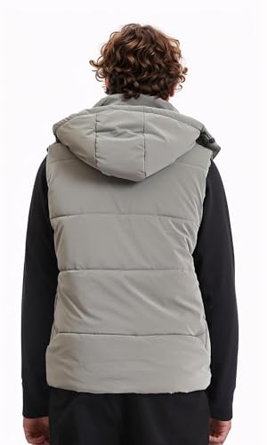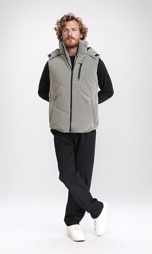 Ravin - ريفين سترة منفوخة سادة للرجال مع غطاء رأس قابل للفصل - رمادي - R211598 جاكيت (عبوة من قطعة واحدة)