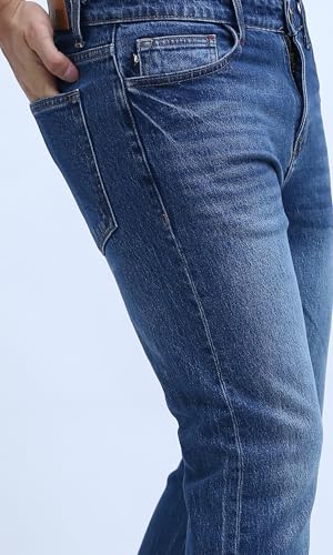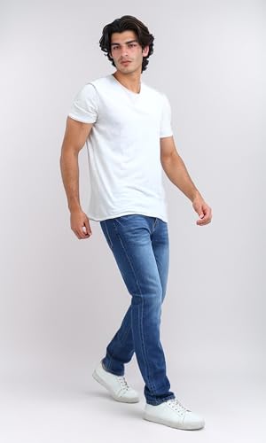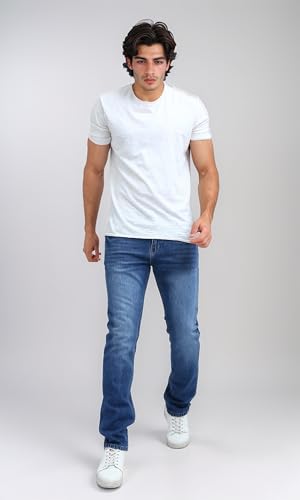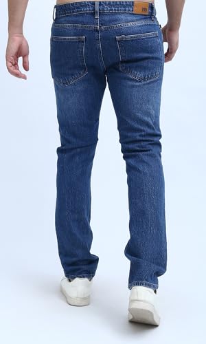 Ravin - بنطلون جينز كاجوال سادة بقصة ضيقة للرجال من ريفين - أزرق غامق