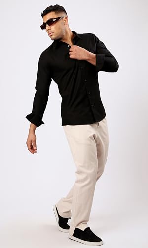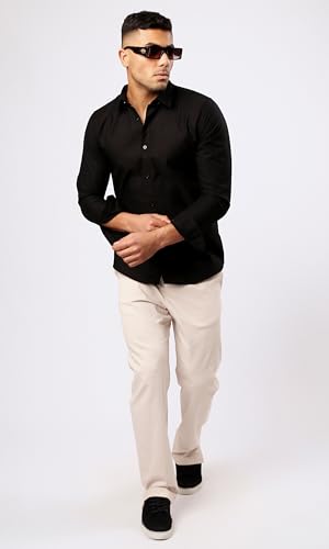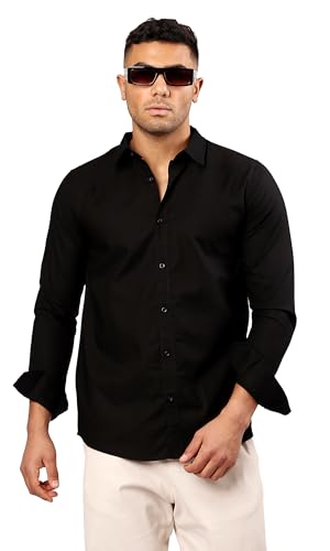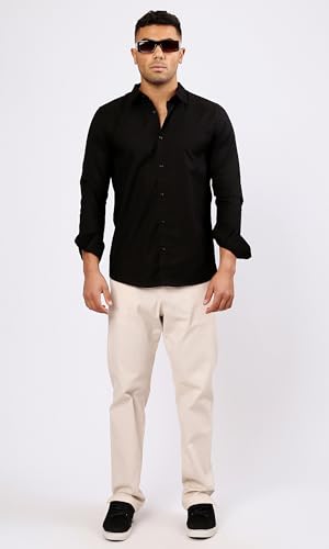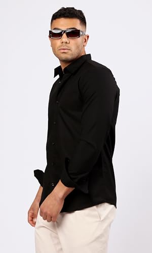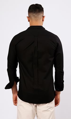 Ravin - ريفين قميص كاجوال سادة باكمام طويلة وازرار بلون اسود للرجال