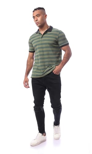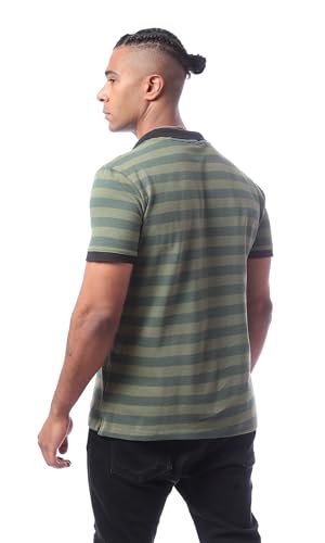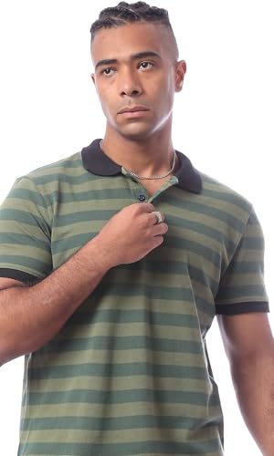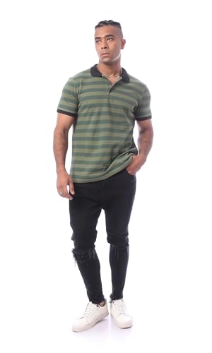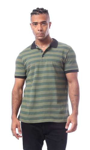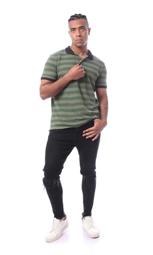 Ravin - قميص بولو مخطط بأكمام قصيرة وياقة للرجال بتصميم عصري من ريفين