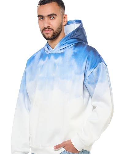 Ravin - سويت شيرت شتوي مريح سهل الارتداء بتصميم مصبوغ بالربط للرجال من ريفين، لون أزرق وأبيض