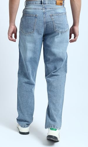 Ravin - ريفين بنطلون كاجوال بارجل واسعة للرجال - جينز ازرق فاتح
