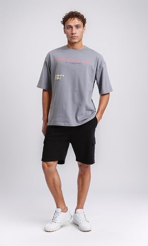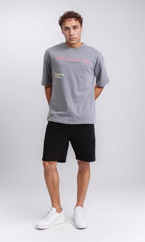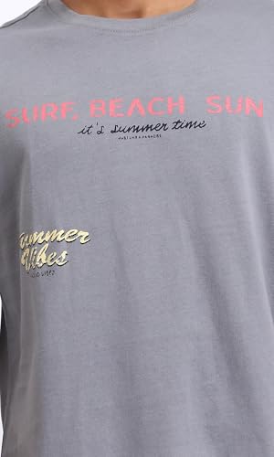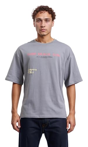 Dsisskai - تيشرت قطن مريح سهل الارتداء مطبوع للرجال من ريفين - رمادي، مقاس L