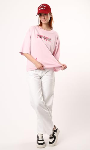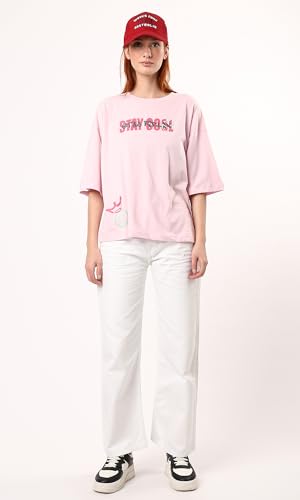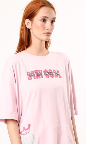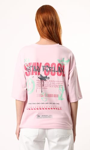 Ravin - تيشرت قطن سهل الارتداء مطبوع بعبارة Stay Cool من ريفين - لون وردي