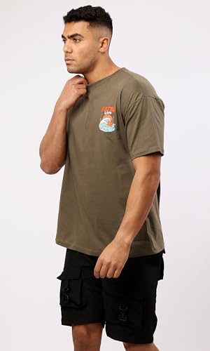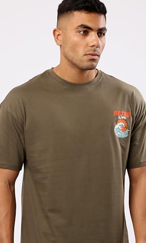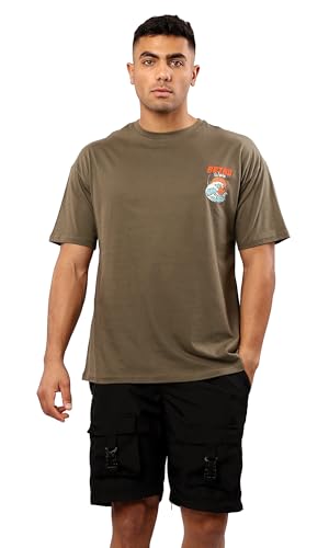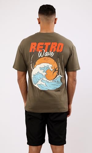 Ravin - تيشرت كاجوال بأكمام قصيرة وطبعة عبارة "Retro Wave" من ريفين، لون زيتي