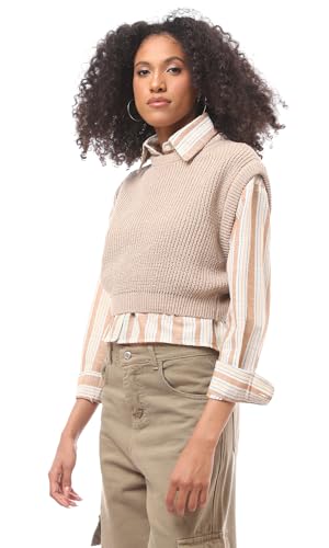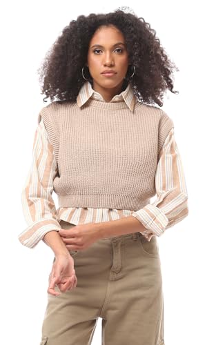 Ravin - فيست من رافين للنساء، بقصة عادية، بكاب أكمام، باللون البيج الداكن، مقاس صغير
