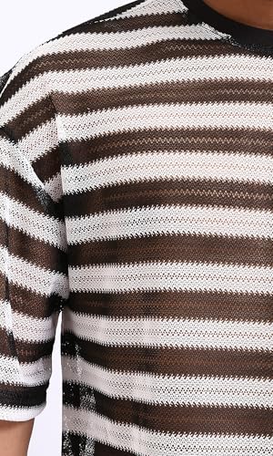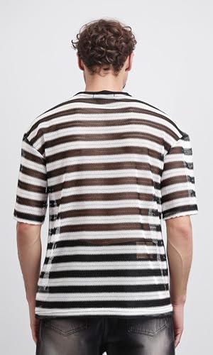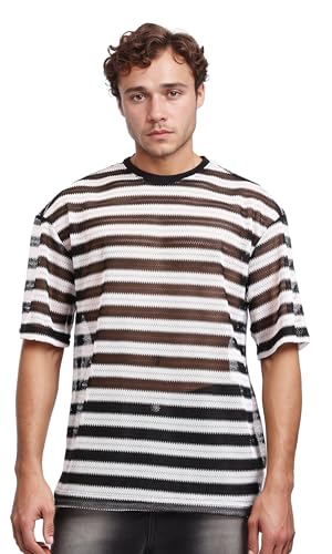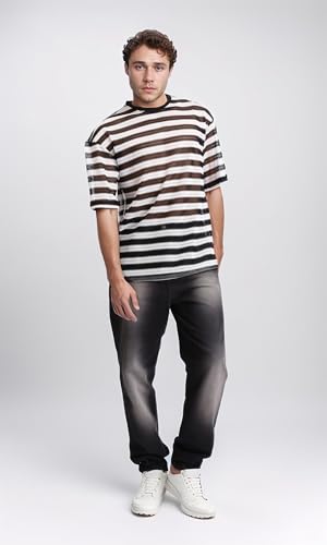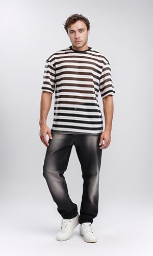 Dsisskai - تيشرت مخطط شفاف سهل الارتداء للرجال من ريفين - اسود وابيض، متعدد الالوان، مقاس M
