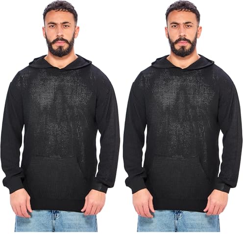 Ravin - بلوفر بأكمام طويلة بغطاء رأس و ياقة للرجال من ريفين، لون أسود، مقاس لارج L، عبوة من قطعتين