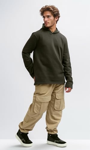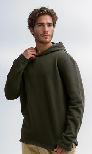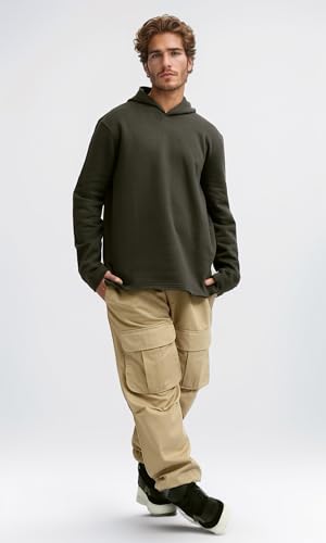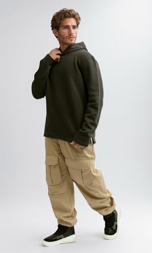 Ravin - سويت شيرت سادة بغطاء للرأس وقماش مضلع داخلي للرجال من ريفين، لون رمادي غامق