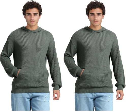 Ravin - بلوفر كاجوال سادة برقبة بغطاء للرأس للرجال في عبوة من قطعتين من ريفين، أخضر زيتي، مقاس سمول S