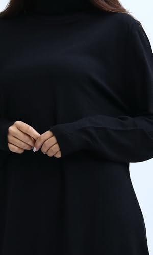 Ravin - ريفين فستان شتوي سادة برقبة مرتفعة - اسود، للنساء، مقاس واحد