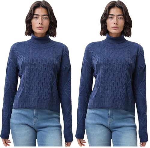 Ravin - بلوفر بقصة عادية ورقبة مرتفعة للنساء من ريفين، لون أزرق كحلي فاتح، مقاس ميديوم M (عبوة من قطعتين)