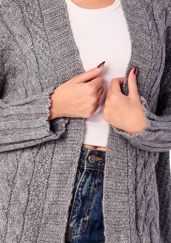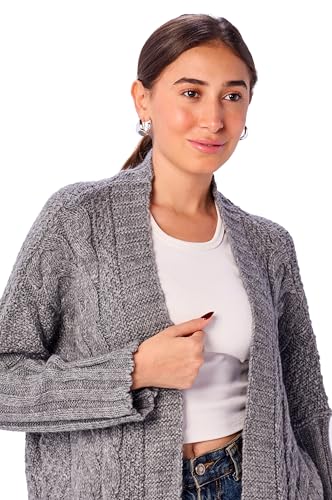 Ravin - كارديجان من رافين برقبة مفتوحة للنساء، قصة عادية بأكمام طويلة، مصنوع من الأكريليك، هيذر رمادي فاتح، مقاس عادي