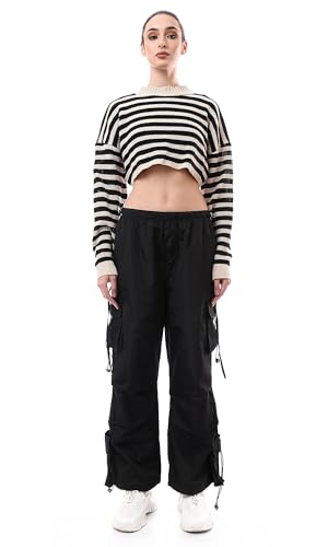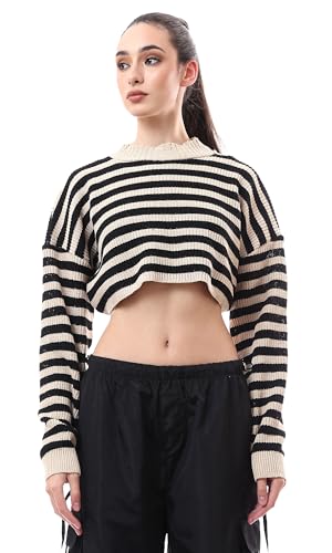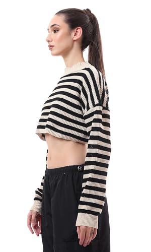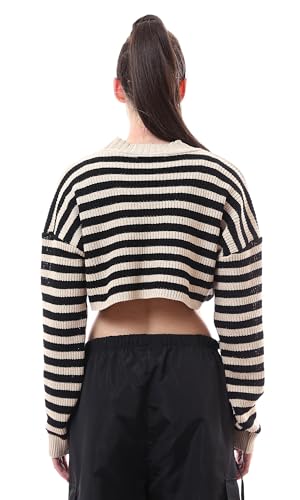 Ravin - ريفين بلوفر قصير محبوك بخطوط بلون بيج واسود للنساء
