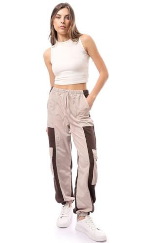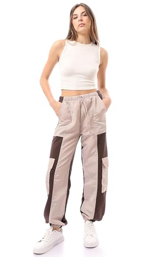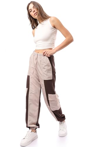 Ravin - ريفين بنطلون كارجو سهل الارتداء بلونين بيج وبني للنساء