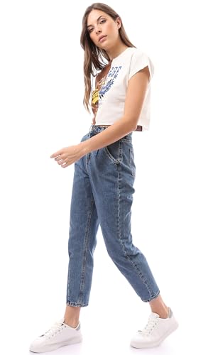 Ravin - ريفين تيشرت قصير باكمام قصيرة مطبوع بلونين للنساء - بيج وبني عصري