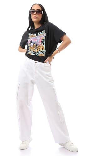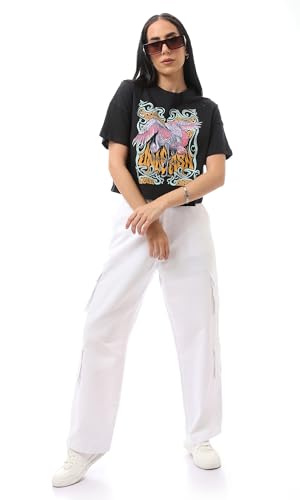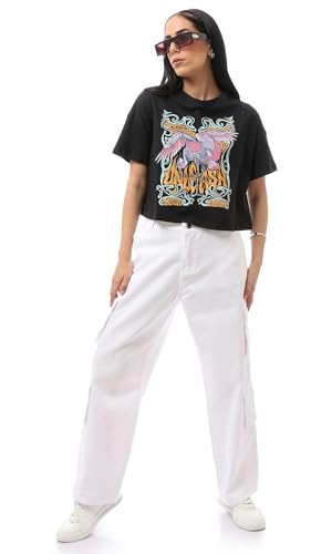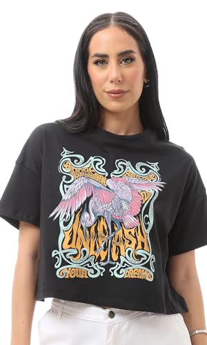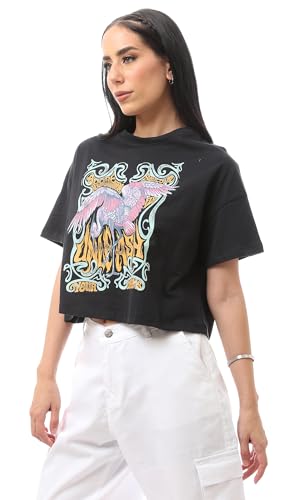 Ravin - ريفين تيشرت عصري بقصة عادية مطبوع سهل الارتداء للنساء بلون اسود