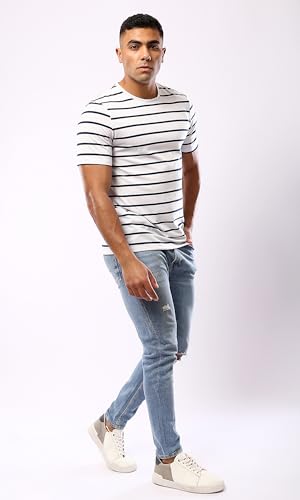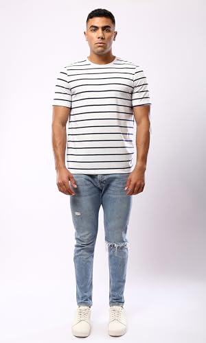 Ravin - تي شيرت عصري مخطط بأكمام الكوع للنساء باللونين الأسود والأبيض من ريفين