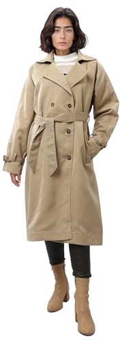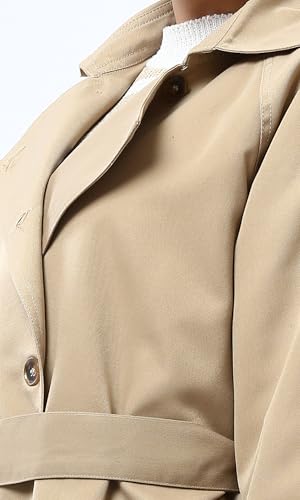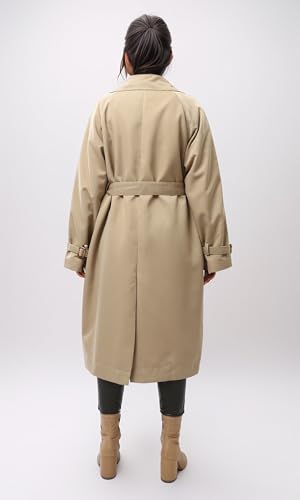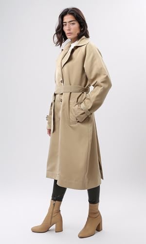 Ravin - بالطو مطر طويل بزرار مع حزام للنساء من ريفين، جاكيت بلون بيج غامق
