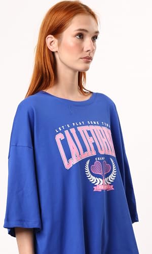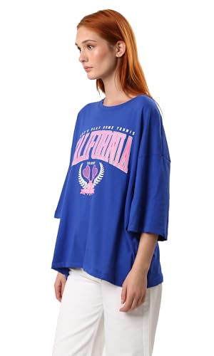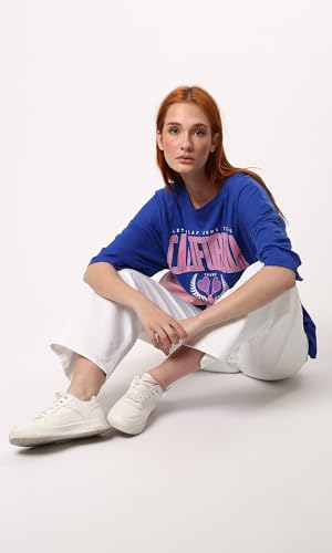 Ravin - تيشيرت عصري مريح من القطن مطبوع عليه كلمة كاليفورنيا للنساء ريفين باللون الأزرق