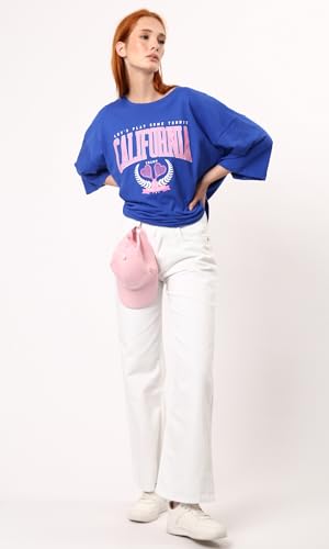 تيشيرت قطني مريح مطبوع عليه "California" باللون الأزرق