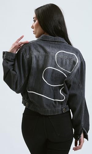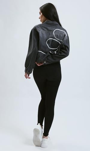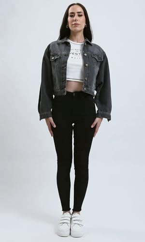 Ravin - ريفين جاكيت جينز للنساء بلون رمادي داكن وياقة مطوية لاسفل