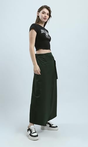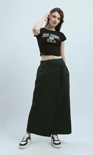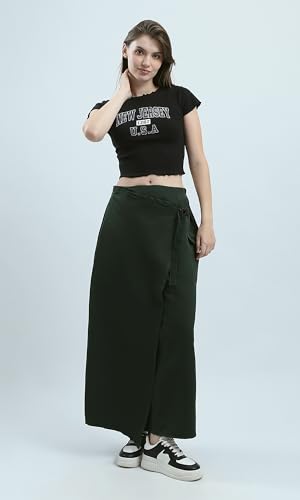 Ravin - ريفين تنورة نسائية سهلة الارتداء باستك عند الخصر بلون اخضر داكن