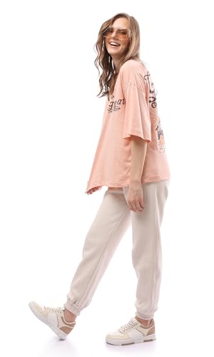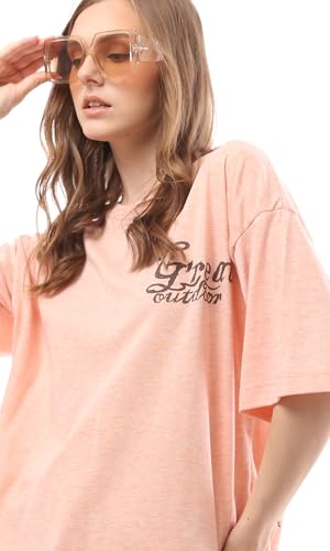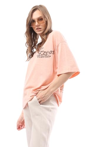 Ravin - ريفين تي شيرت نسائي فضفاض بأكمام الكوع بلون برتقالي مرجاني مرقش عصري