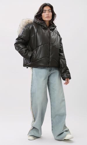 Ravin - جاكيت جلد عصري بسوستة للنساء من ريفين، لون بني محروق