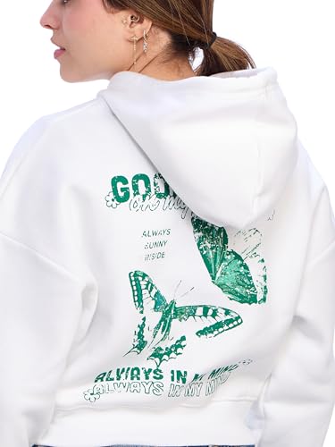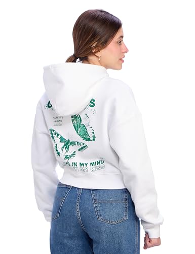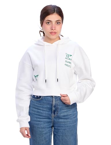 Ravin - ريفين هودي قصير عصري باكمام طويلة للنساء - سويت شيرت ابيض للنساء