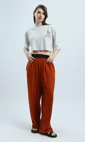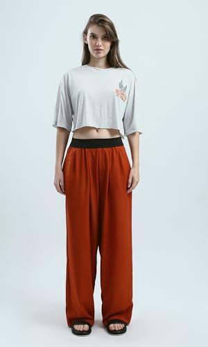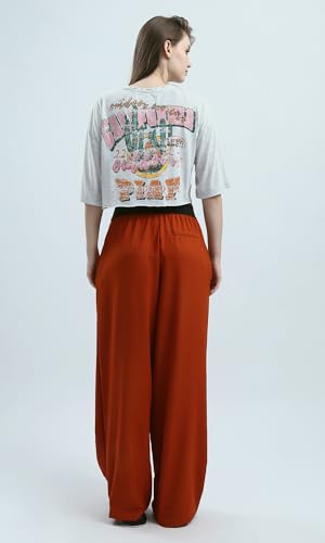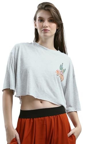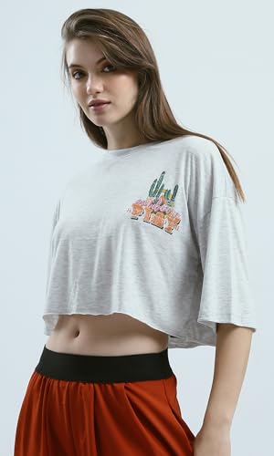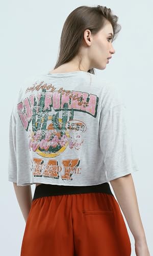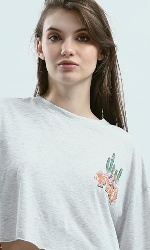 Ravin - تيشيرت حريمي مشجر مطبوع بلون رمادي فاتح مع طباعة أمامية وخلفية عصرية من ريفين