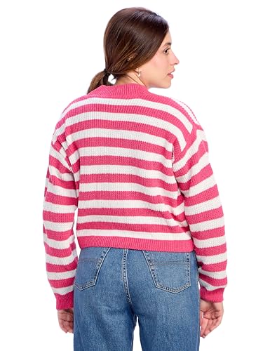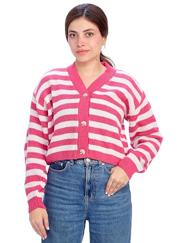 Ravin - ريفين كارديجان قصير باكمام طويلة للنساء - لون فوشيا وابيض