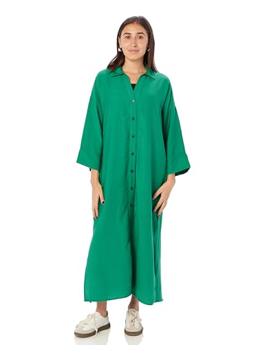 Ravin - ريفين فستان بتصميم قميص عصري باكمام طويلة وازرار كاملة للنساء بلون اخضر