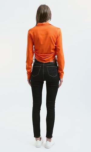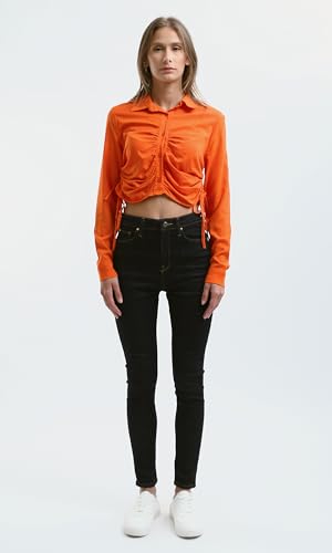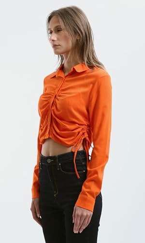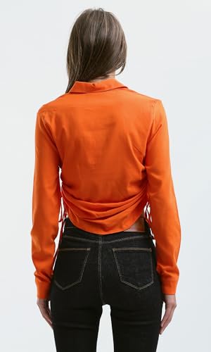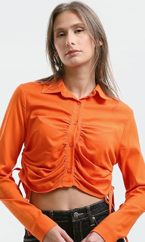 Ravin - قميص قصير سادة بأكمام طويلة وتصميم عصري للنساء من ريفين، لون برتقالي فاقع (هوت اورانج)