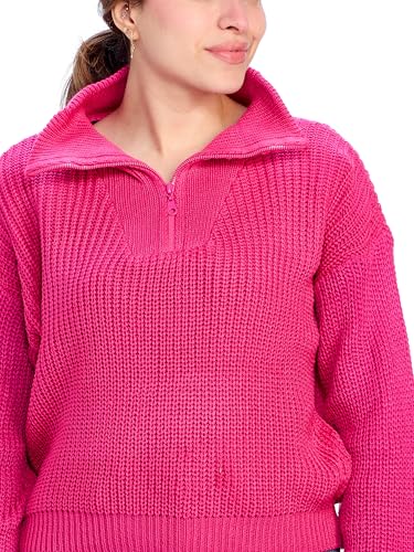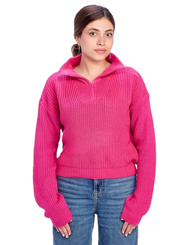 Ravin - بلوفر بأكمام طويلة وقصة عادية وسوستة - فوشيا بلوفر للنساء من ريفين