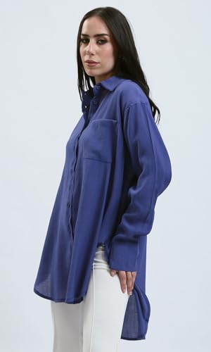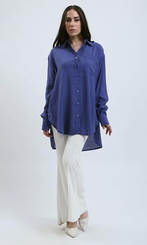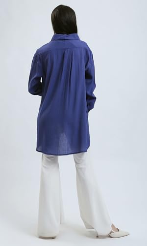 قميص فضفاض بأزرار بلون أزرق داكن