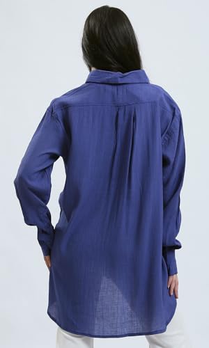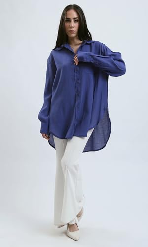 Ravin - قميص حديث فضفاض بازرار بلون أزرق غامق للنساء من ريفين