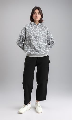 سويت شيرت منقوش بغطاء للرأس سهل الارتداء باكمام طويلة - رمادي - R214520