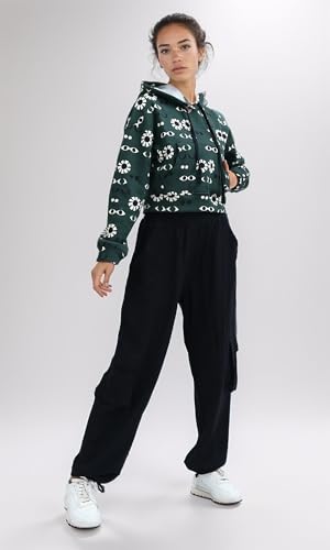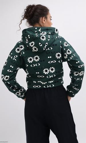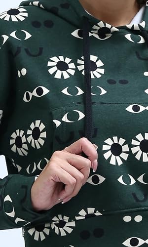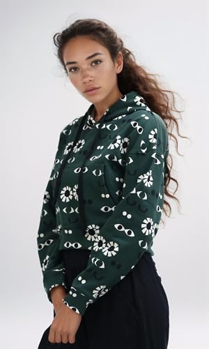 Ravin - سويت شيرت بغطاء للرأس بأكمام طويلة بتصميم منقوش سهل الارتداء للنساء من ريفين، لون أخضر وأسود