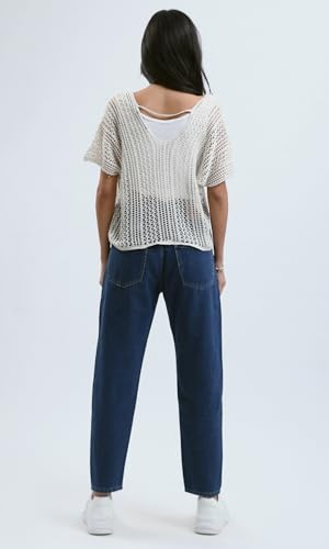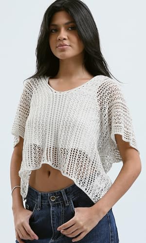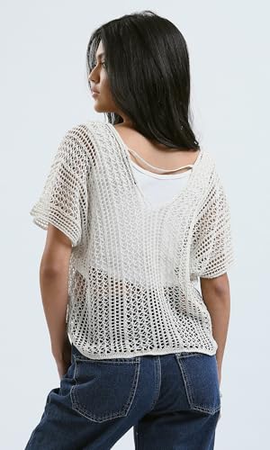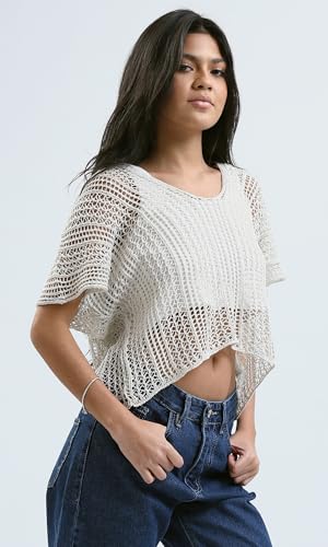 Ravin - ريفين بلوزة صيفية عصرية مخرمة من الكروشيه بلون ابيض للنساء