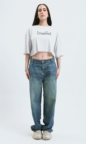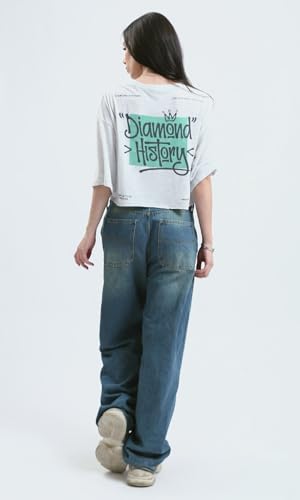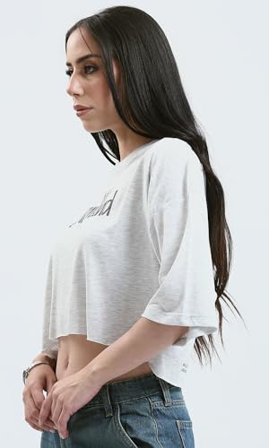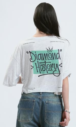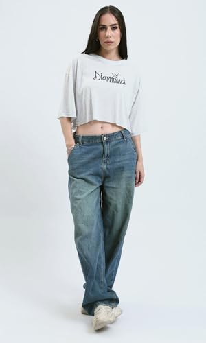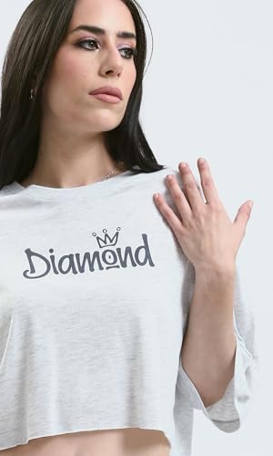 Ravin - ريفين تي شيرت نسائي قصير مطبوع عليه "Diamond" مرقش رمادي فاتح عصري