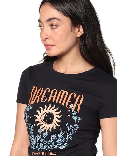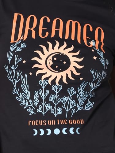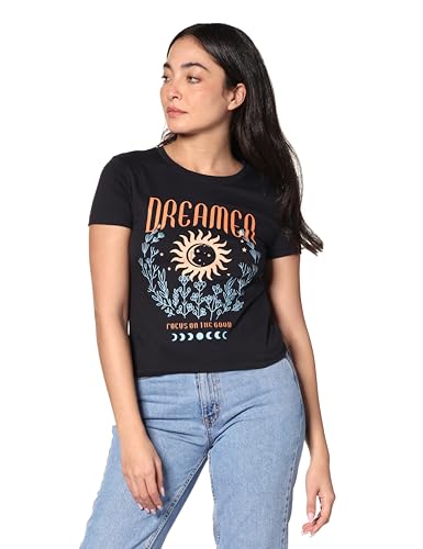 Ravin - تيشرت قطن بأكمام قصيرة ونمط حديث وطباعة عليه كلمة "Dreamer" للنساء من ريفين، لون أسود