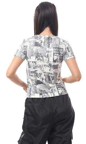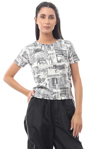 Ravin - ريفين تيشرت عصري برقبة دائرية مطبوع سهل الارتداء للنساء