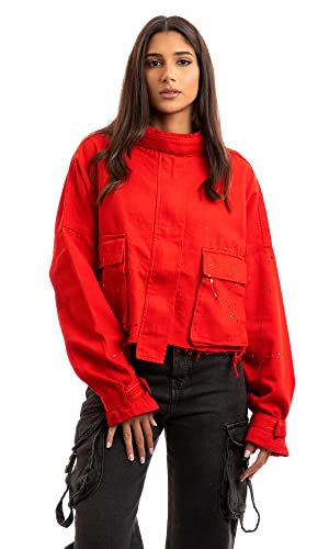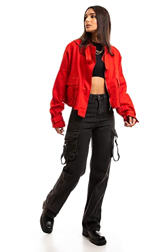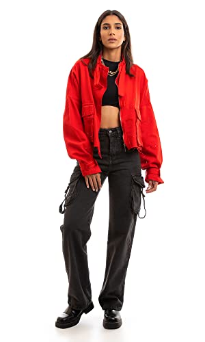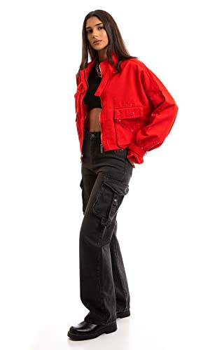 Ravin - جاكيت جينز قطن بتصميم منقوش وسوستة من ريفين - موديل 96005