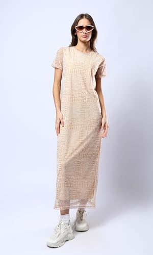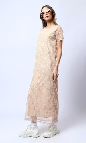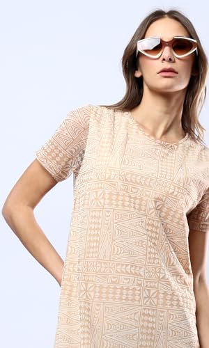 Ravin - فستان متوسط الطول منقوش برقبة دائرية واسعة للنساء من ريفين متعدد الألوان كاجوال